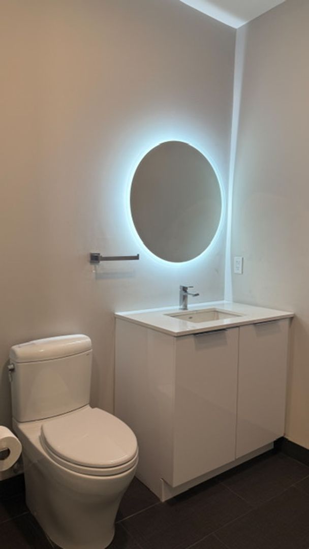 Luxury touches throughout the unit including on open kitchen concept, custom cabinets, Quartz countertops, Stainless Steel appliances and luxury lighting. The tiled bathroom features a frameless glass shower and Premium bathroom finishes!